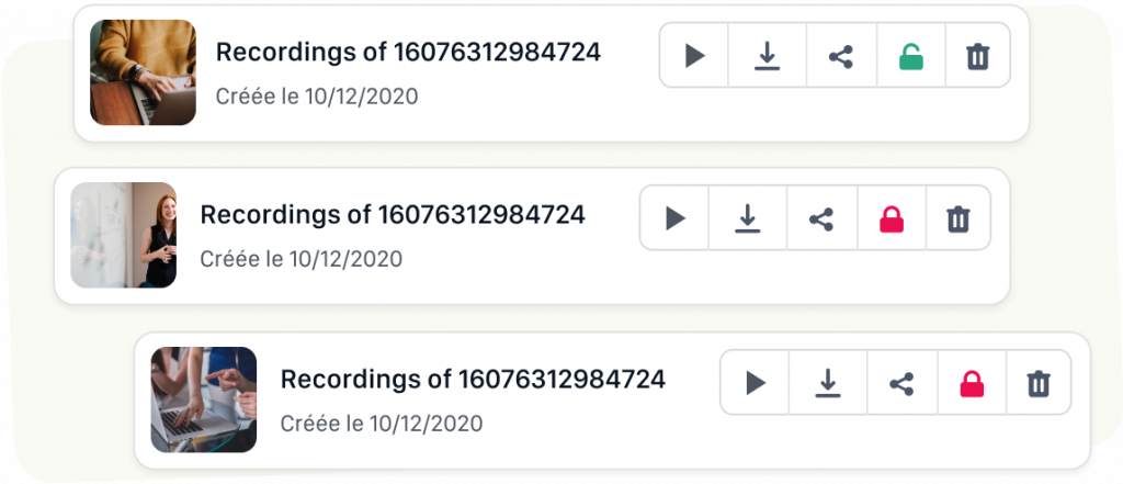 Immediately after the end of your live session, receive your replay in MP4 format. You can also download it or share it with the participants of your choice.