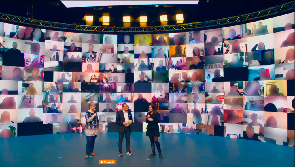 Retrieve the flow of all connected remotely on a specific link to rebroadcast it on a giant LED screen to integrate it into your set, for example, in the context of hybrid events where you have both a physical studio and Blastream.
