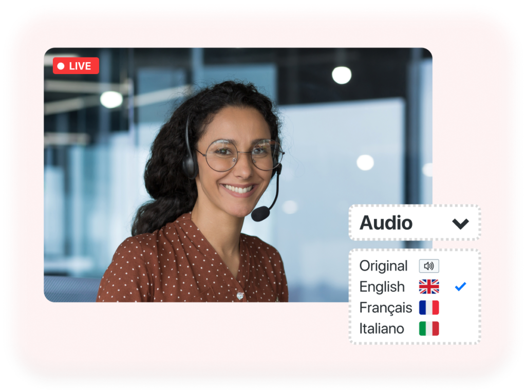 With the possibility of having one or more interpreters in your room, you can make your live shows accessible to a larger number of international viewers.