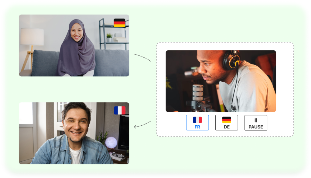 With a quick and easy set-up of a multilingual video conference, break the language barrier and extend the reach of your communications!