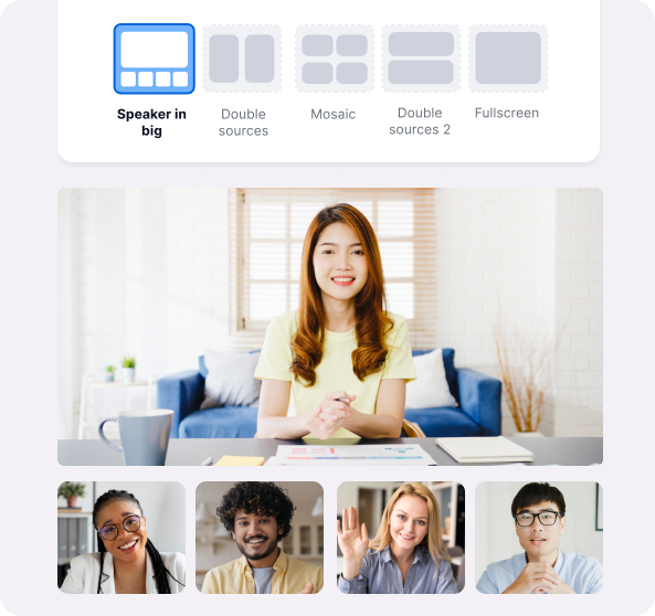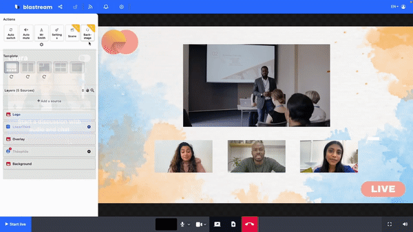 Set up your video with your preferred layout and customize the different layers on the live interface.